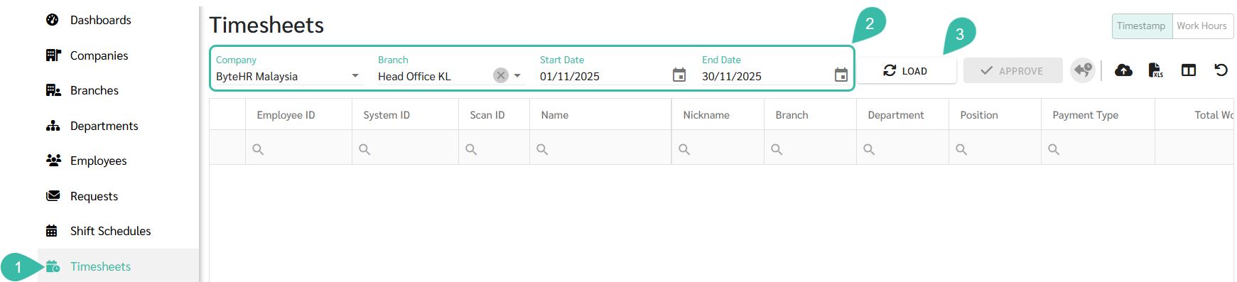 - If employees clock in and out after the Timesheet has been approved, the system will not update the clock in and out data into the Timesheet.