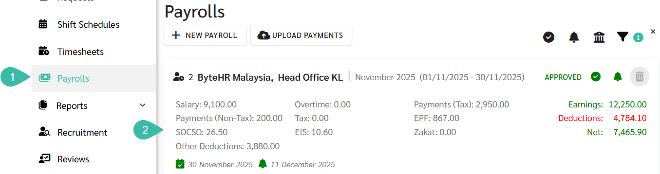 After the Payroll has been generated and payslip notifications sent to employees, the administrator can edit the Payroll and send Payslip Notification again only to those employees who have been granted permission to do so.