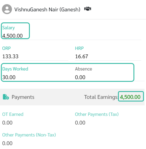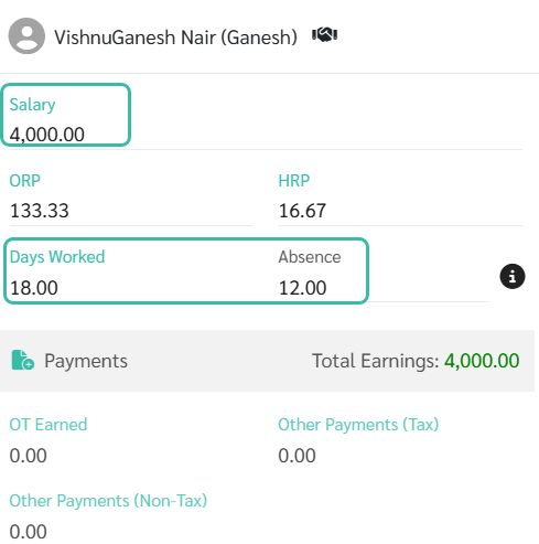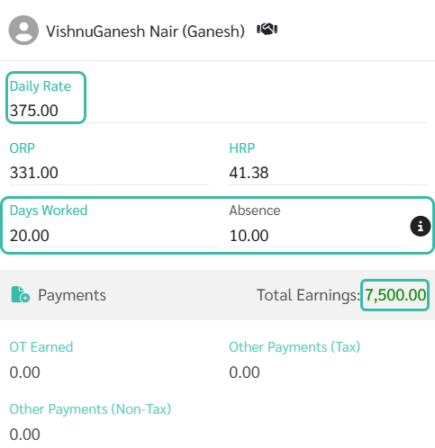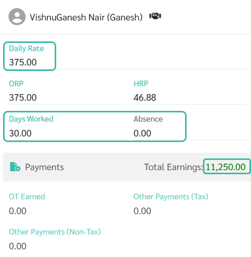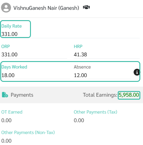 The system will display the number of working days (Days Worked) based on the information in the template uploaded to the system, and will show the salary rate according to the employment contract.