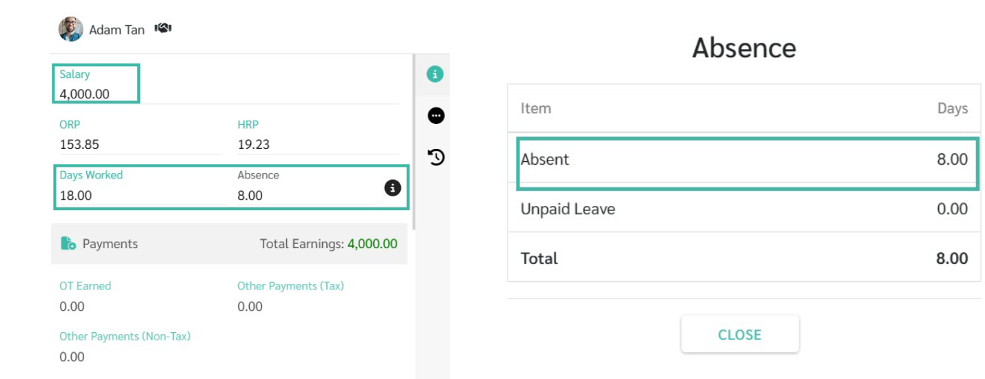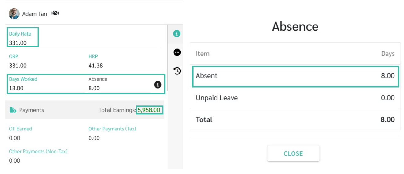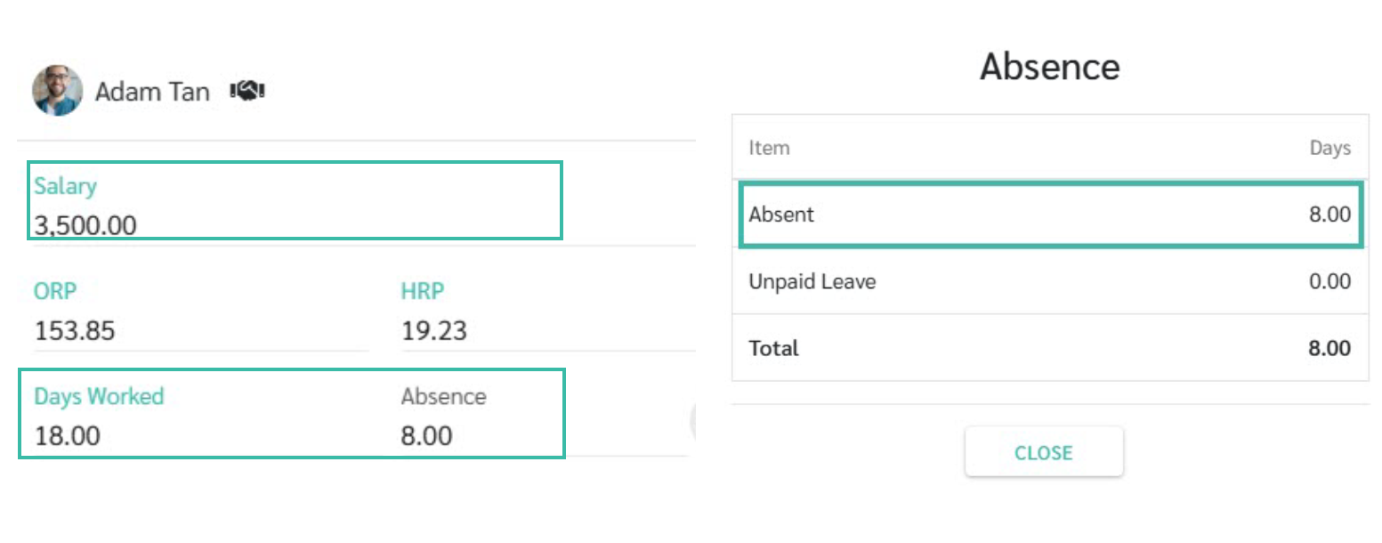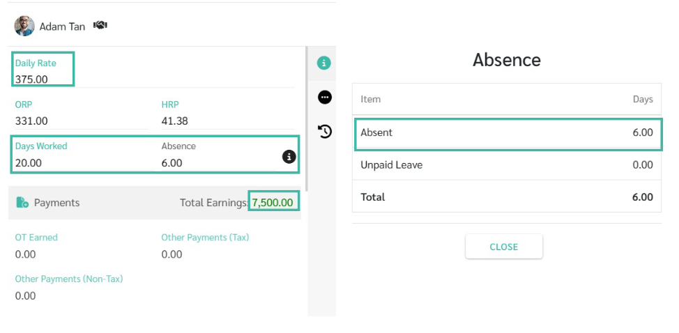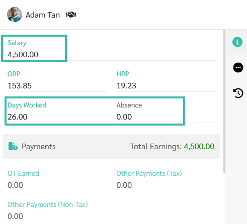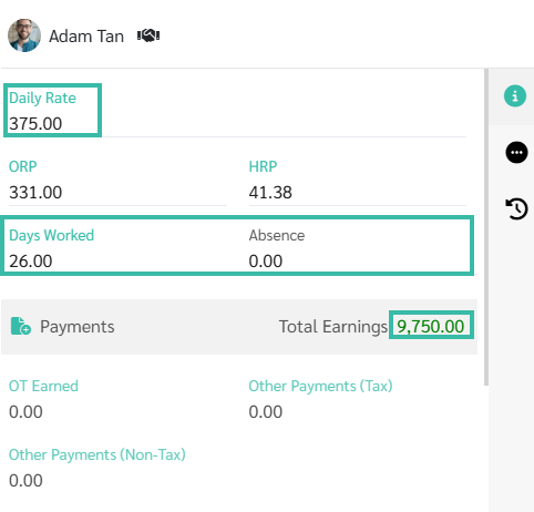 The system will display the number of Days Worked based on the information in the Uploaded template to the system, and will show the salary rate according to the employment contract.