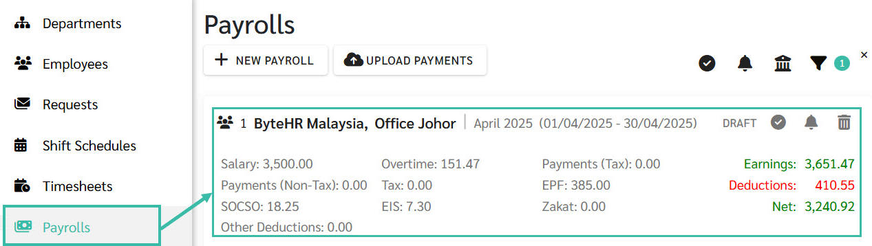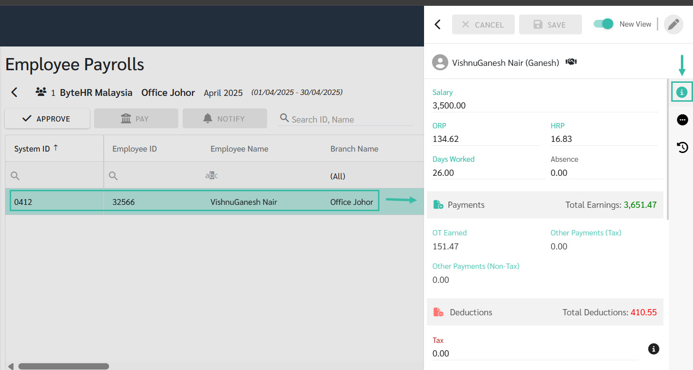 In the Payroll tab, click on the desired Payroll block.