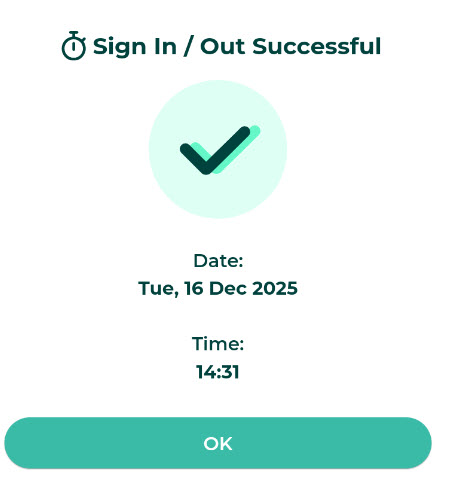 - For example, if you clock in at 14:31, the system will display "Sign In/Out successful."