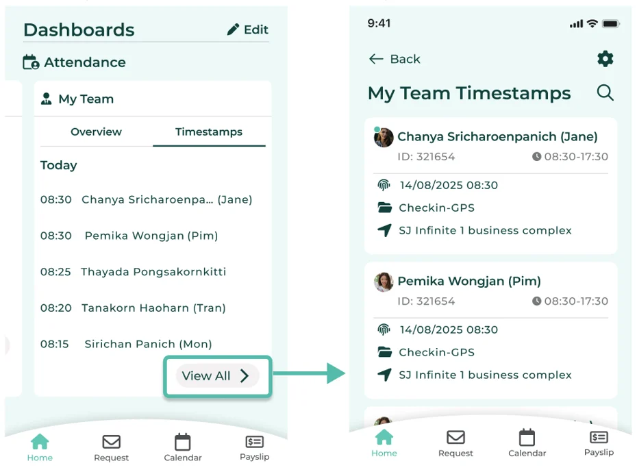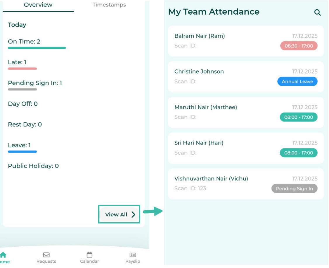 Managers/supervisors can click the "View All" button to see details of all employees under their supervision.