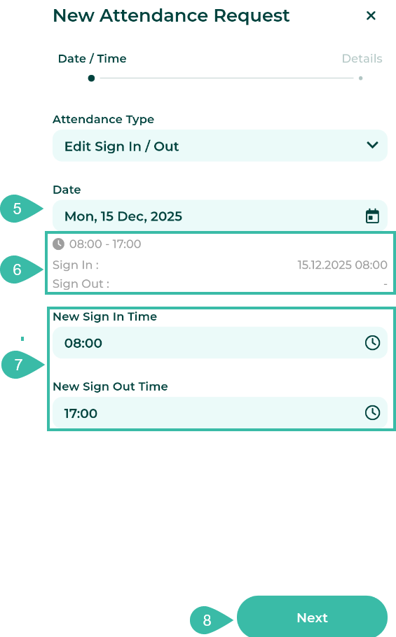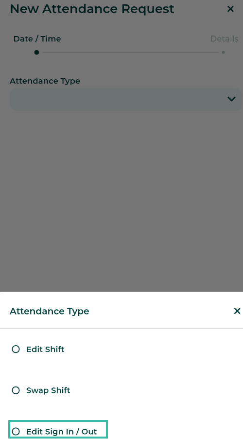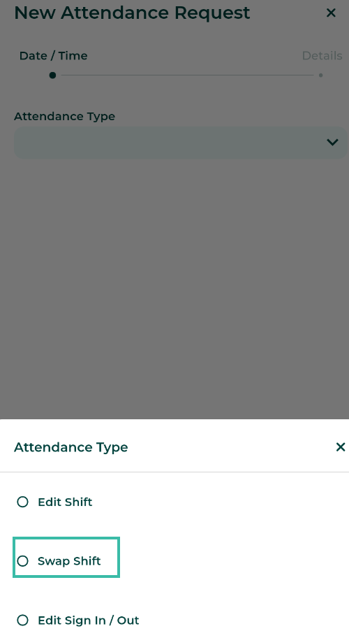 Employees can submit Attendance Requests via Mobile App for managers or admin approval in cases where Edit Shifts, Shift Swaps, or Edit Sign In/Out times are required.