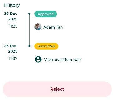Managers will be able Reject or Approve the submitted request on the Details page.