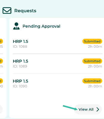 Alternatively, managers can check the Request Dashboard, then under the Pending Approval section, select View All.