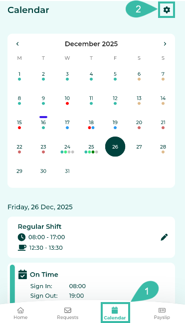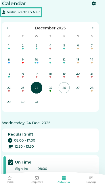 The Manager Views the Employee Calendar on the ByteHR Mobile App