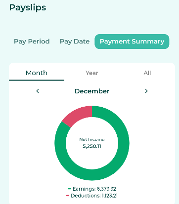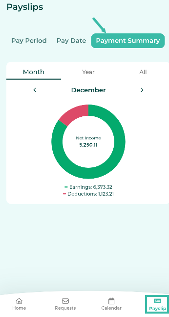 Note: The system will only display the Payment Summary for months in which a Payslip notification has been sent.