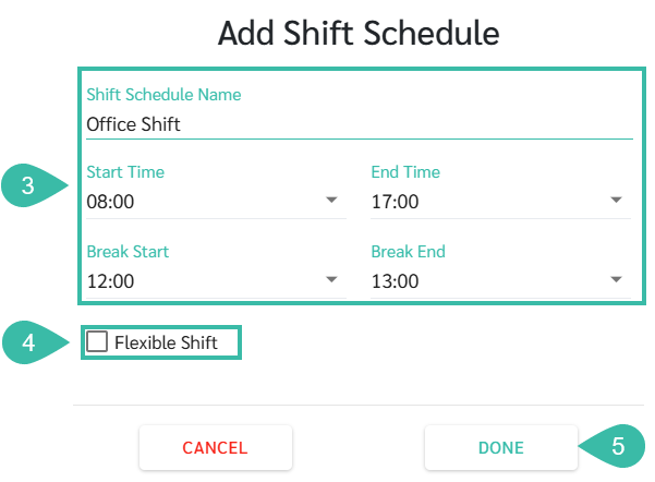 - Tick the "Flexible Shift" checkbox if you want Flexible Shift Schedule