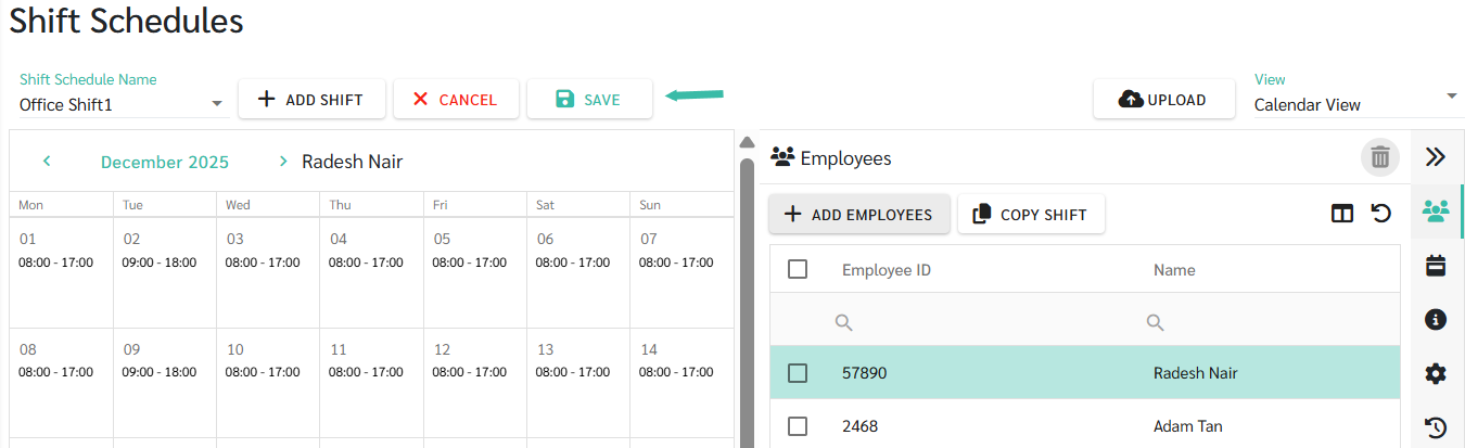 Once the employee list is displayed with the selected employees, click Save.