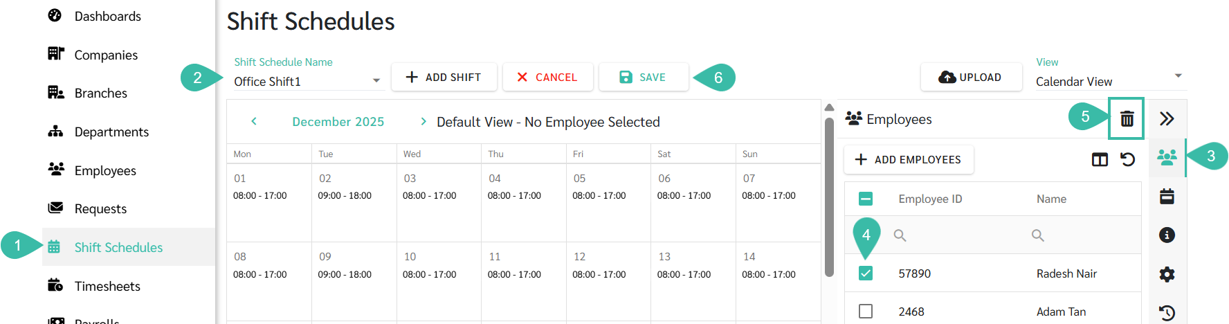 Add/Delete Employees in Shift Schedule
