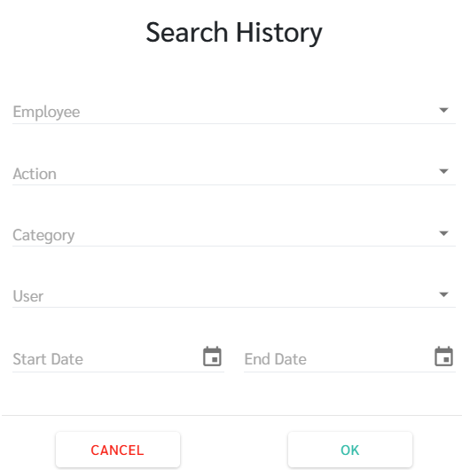 Admin can filter the displayed information by clicking the "Search History" button.