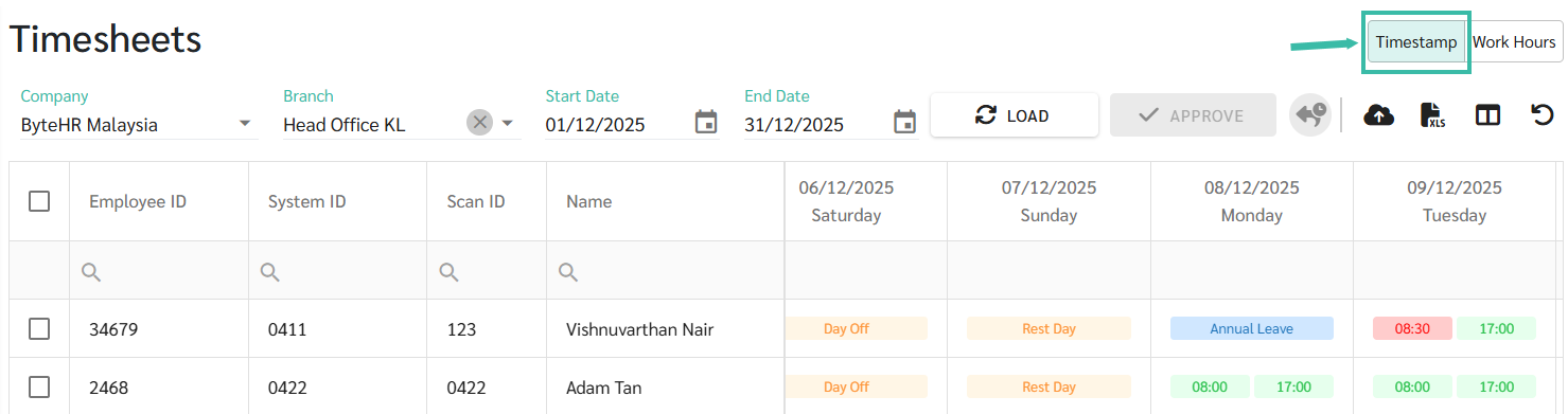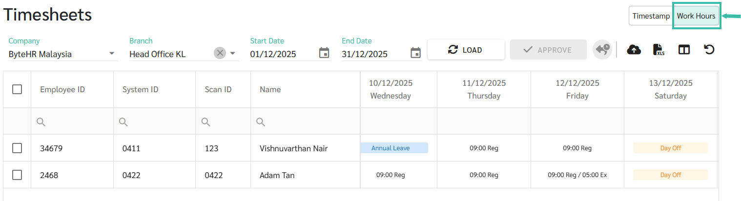 Load Timesheet