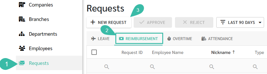 - Only Reimbursement Requests with a Request date within the Payroll processing period and an Approved Reimbursement Request will be included as Payments for that Pay period.