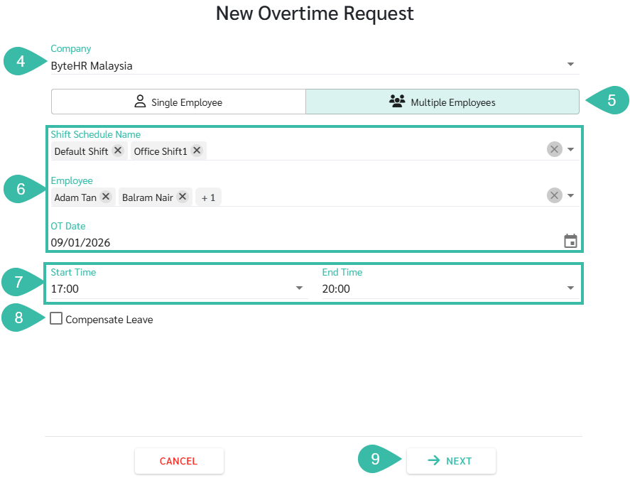 - If you want to convert Overtime to Compensate Leave, tick the Compensate Leave checkbox.