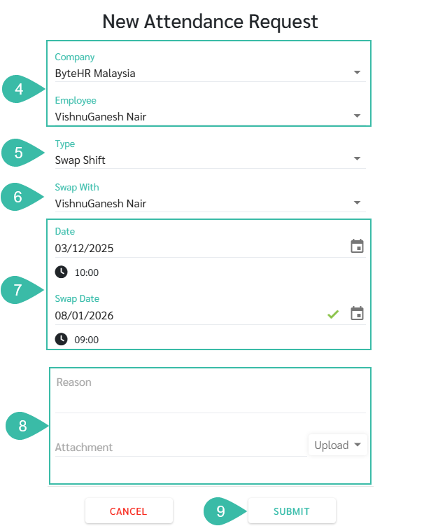 Attendance Request - Swap Shift for Flexible Shifts