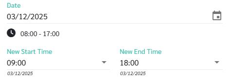 - The system will display the Start and End time of the Shift for the selected date.