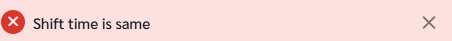 If attempted, the system will prompt an error message below the chosen date as "Shift time is same".