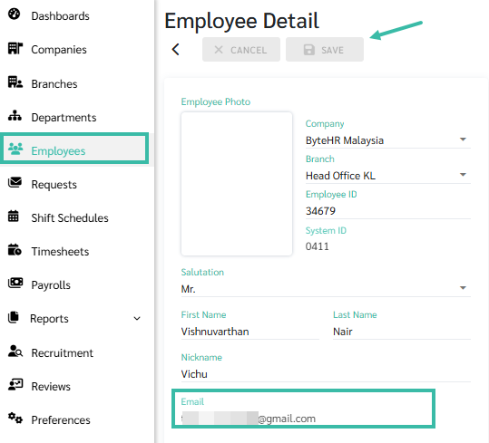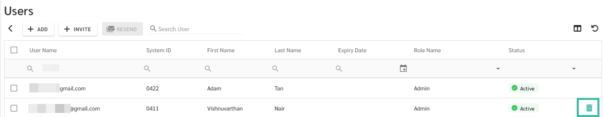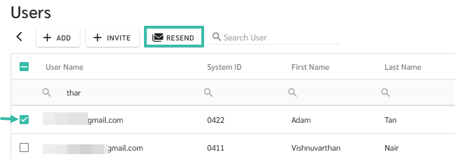 If the employee does not receive the invitation, click the envelope icon to Resend the Invitation to the same user.