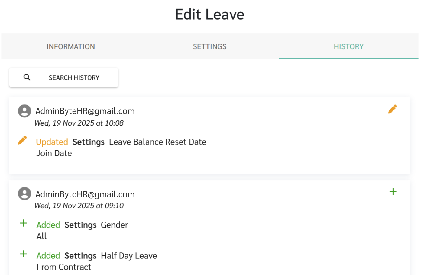 - Any changes made will be recorded in the History tab.