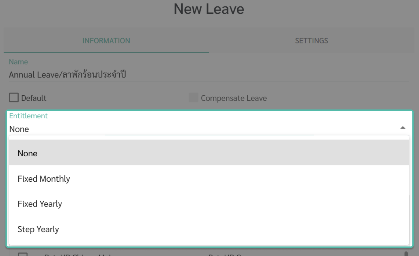 The only exception is when the leave type is set as Compensate Leave, where the system will automatically assign Fixed Yearly entitlement of 0 days.