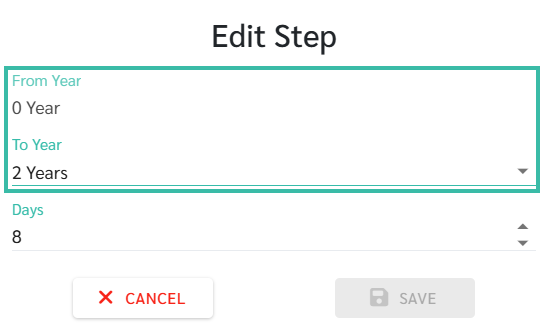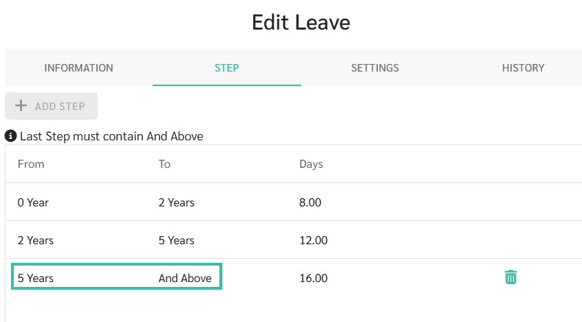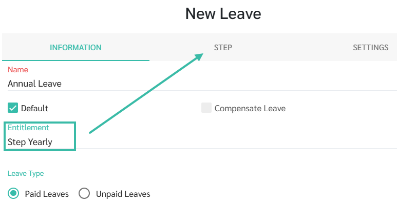 - Set the Leave Entitlement to be based on Step Yearly.
