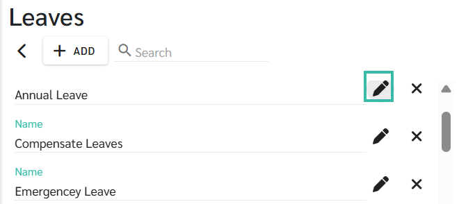 Click + Add to add a new Leave Type, or click an existing Leave Type to edit it.