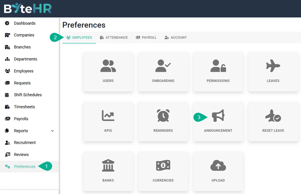 To Create Announcements, follow the steps below: