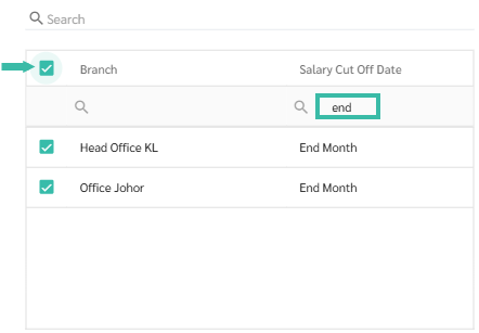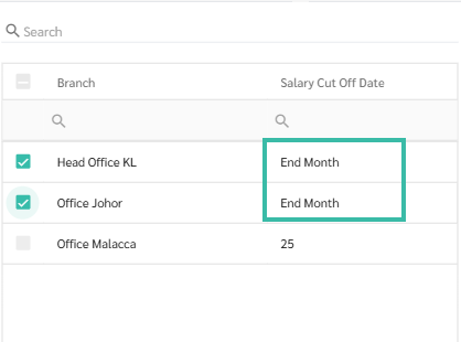 You can select multiple branches simultaneously, provided that each branch has the same salary cut-off date.