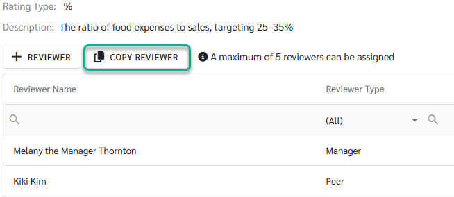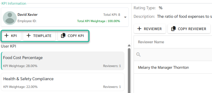 - Used to copy KPIs already configured for one employee and apply them to other employees within the same review round.