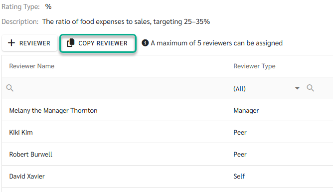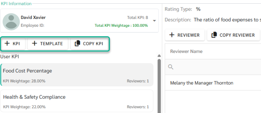 - Used to copy KPIs configured for one employee and apply them to other employees within the same review round.