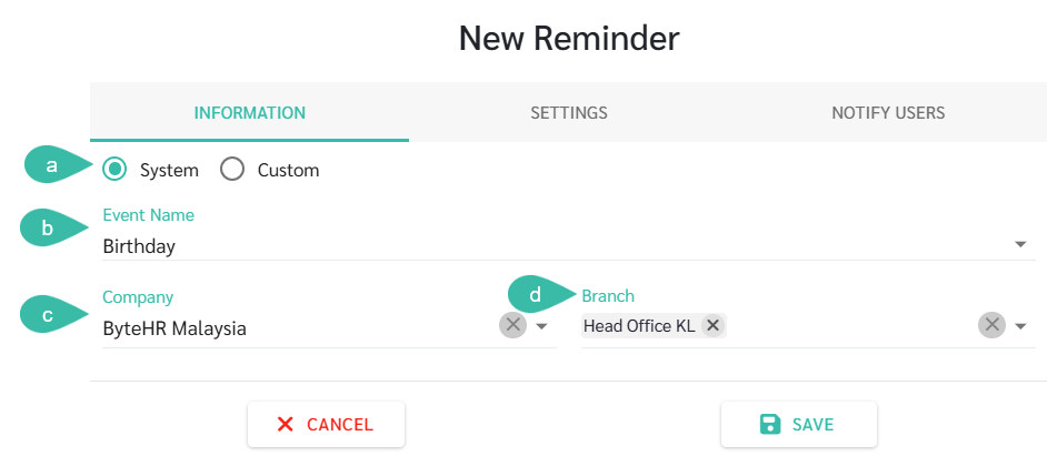- Select the Event Name as Birthday from the dropdown list.