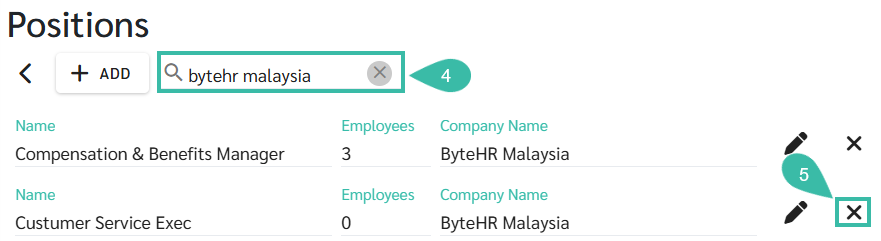 Click the Delete icon next to the Position you want to remove.