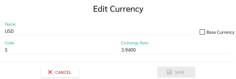 Click + Add to add a new currency.