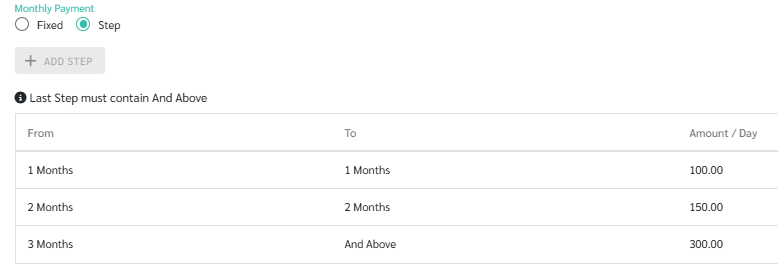 Step: The amount of Allowance received increases in steps if certain payment conditions are met.