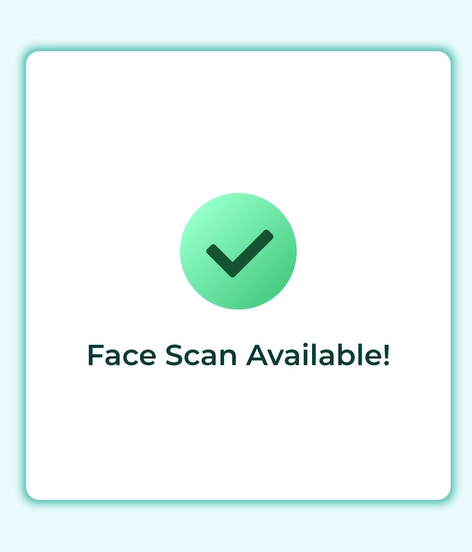 Setelah sistem berjaya menangkap gambar muka anda, anda akan menerima mesej "Face Scan Available!" (Imbas Muka tersedia).
