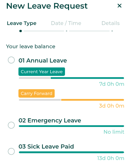 Pekerja boleh menambah permohonan Cuti Baru melalui aplikasi mudah alih untuk kelulusan pengurus atau pentadbir mereka.