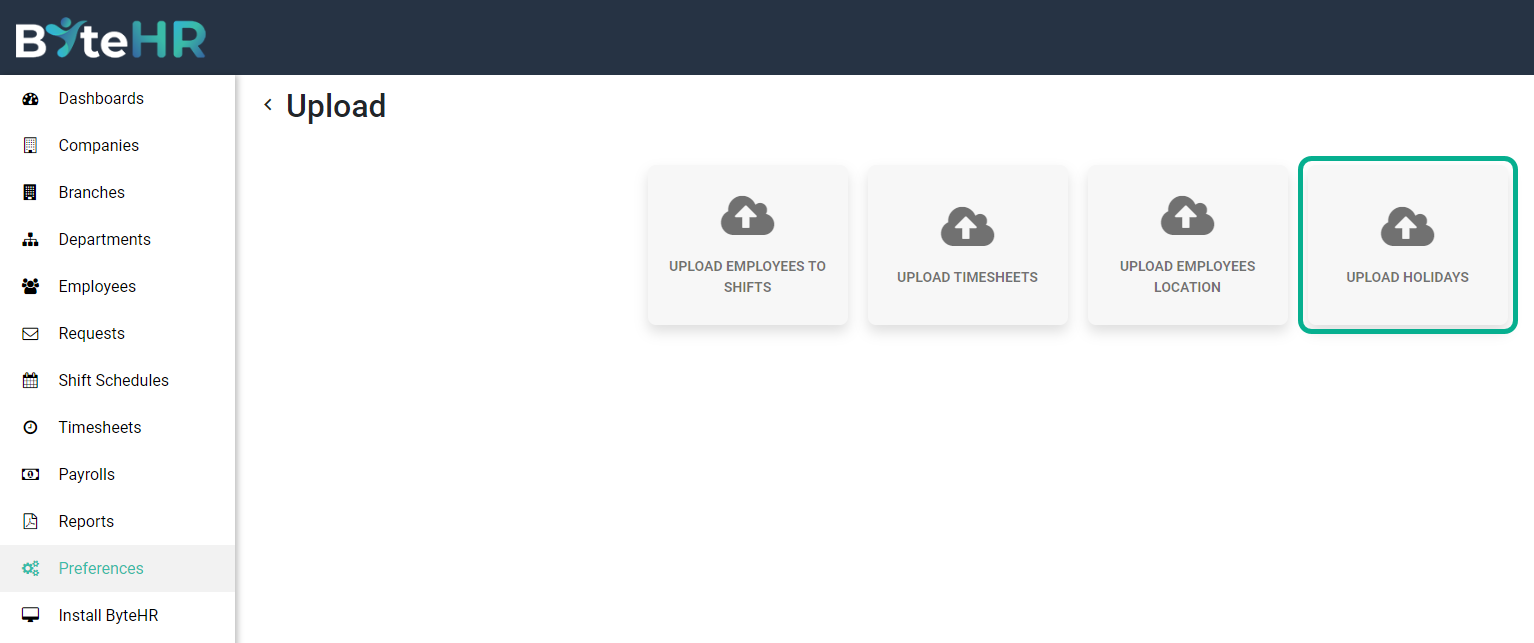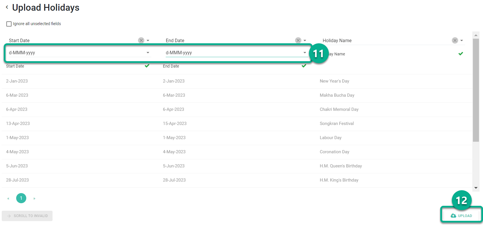 Click Upload Holidays.