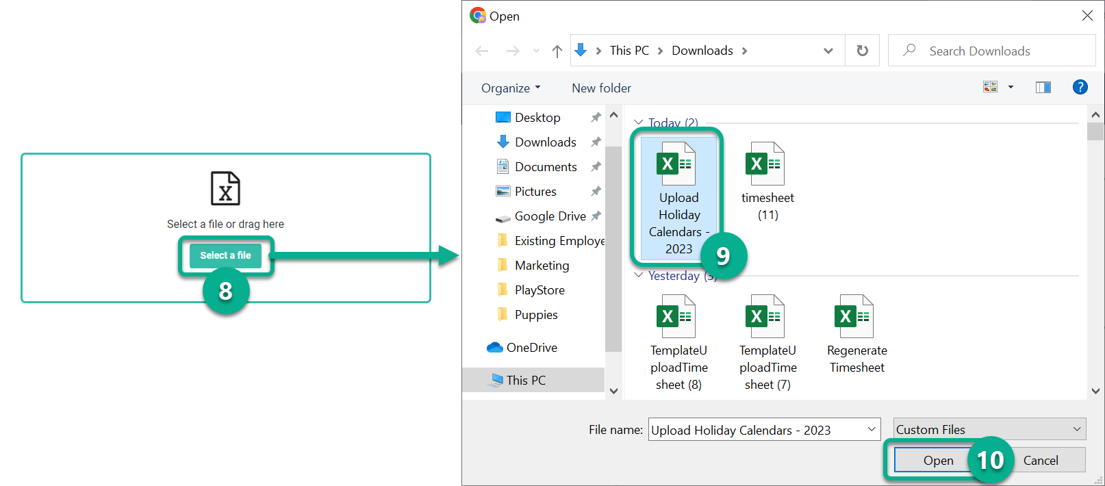 - Click the desired Excel file to upload.