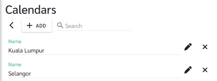 An example of completed adding the Public Holidays in the Calendar.