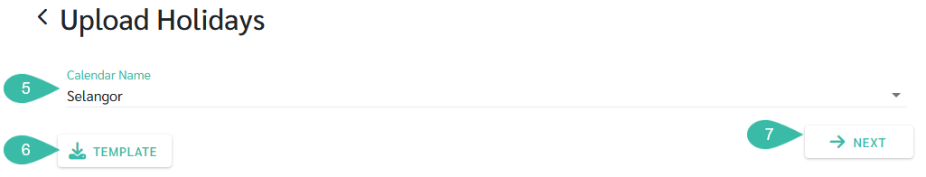 - Click Template to download the template and fill in the holidays for the following year.