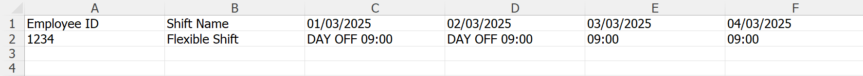 If it's a weekly day off, enter "DAY OFF" in front of the time, e.g., DAY OFF 09:00