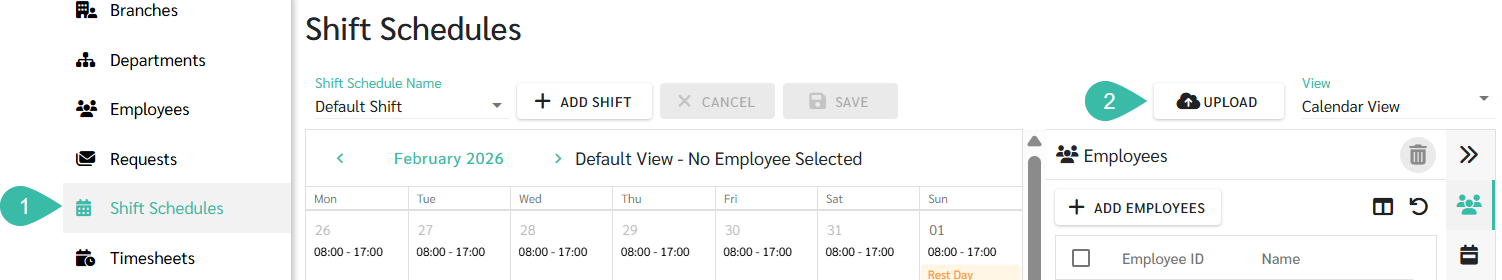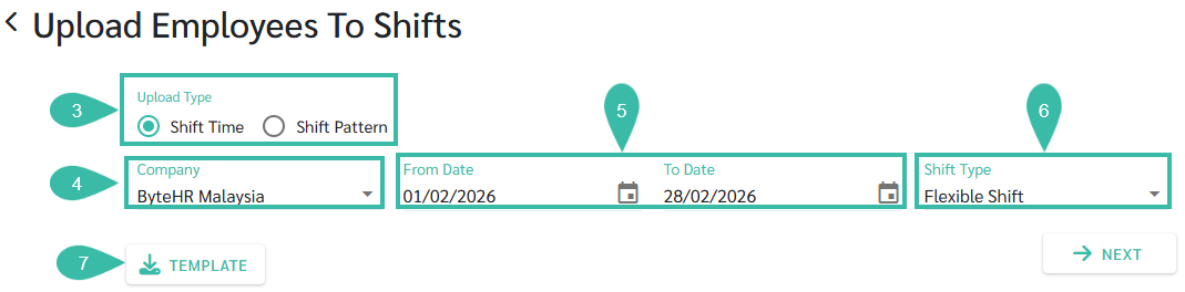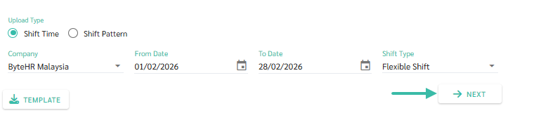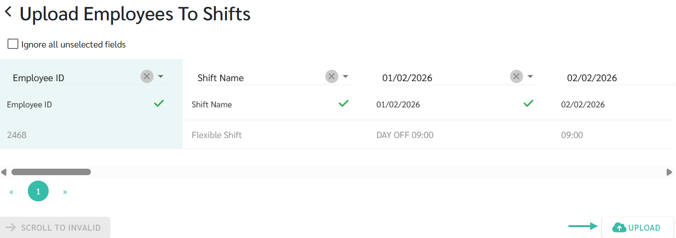 - In the Upload Employees to Shifts page, select the Upload Type as Shift Time.